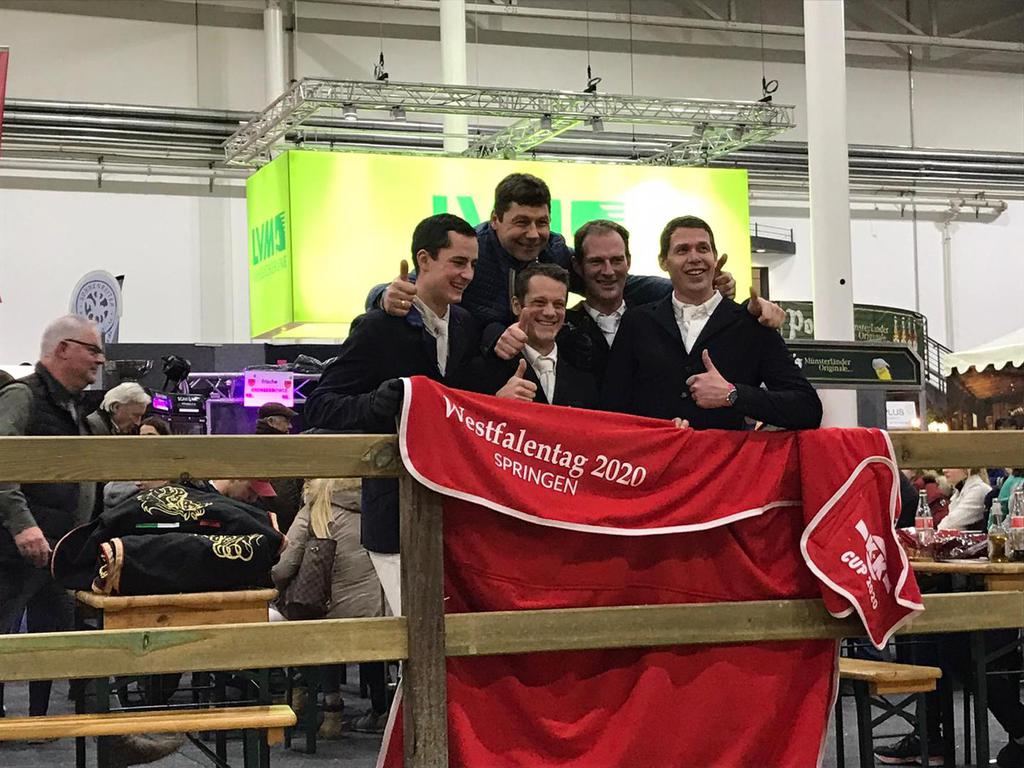 Das Team vom KRV Borken hat das Mannschaftsspringen der westfälischen Kreisverbände 2020 gewonnen. Mannschaftsführer Gerd Könemann und seine Reiter Reto Weishaupt (RV Ahaus-Ammeln), Yann Chartier und Hermann Ostendarp (beide ZRFV Borken) sowie Stefan Engbers (RFV Südlohn-Oeding) schafften den Sieg mit einem Null-Fehler-Gesamtergebnis. Zweiter wurde das Team vom Reiterverband Münster vor der Mannschaft des Kreisreiterverbandes Steinfurt.
